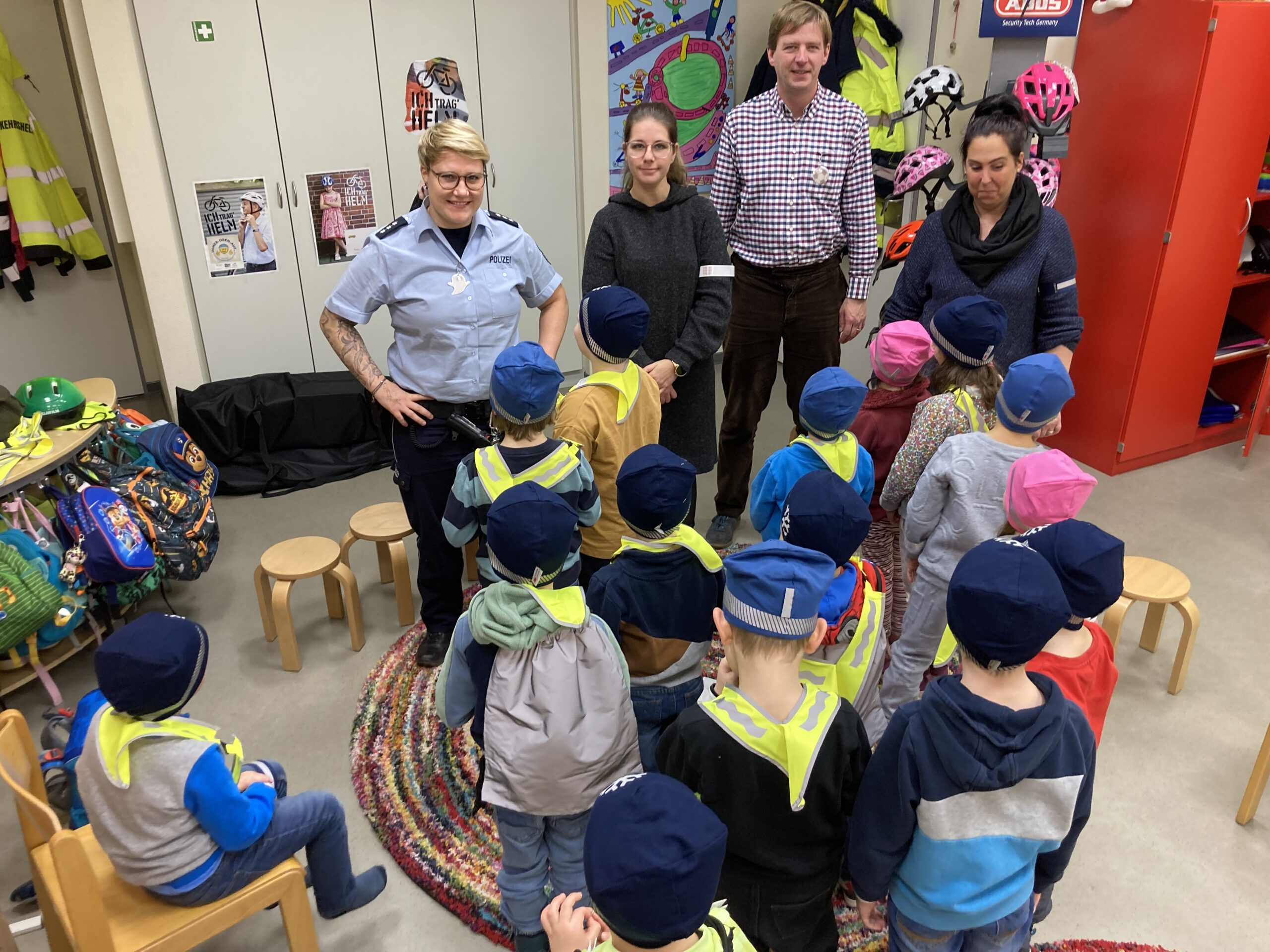 Gemeinsam mit Ihren Erzieher*innen und der zuständigen Verkehrssicherheitsberaterin des Polizeipräsidiums Mönchengladbach, Frau Miriam Weber, arbeiteten die Kinder zum Thema: